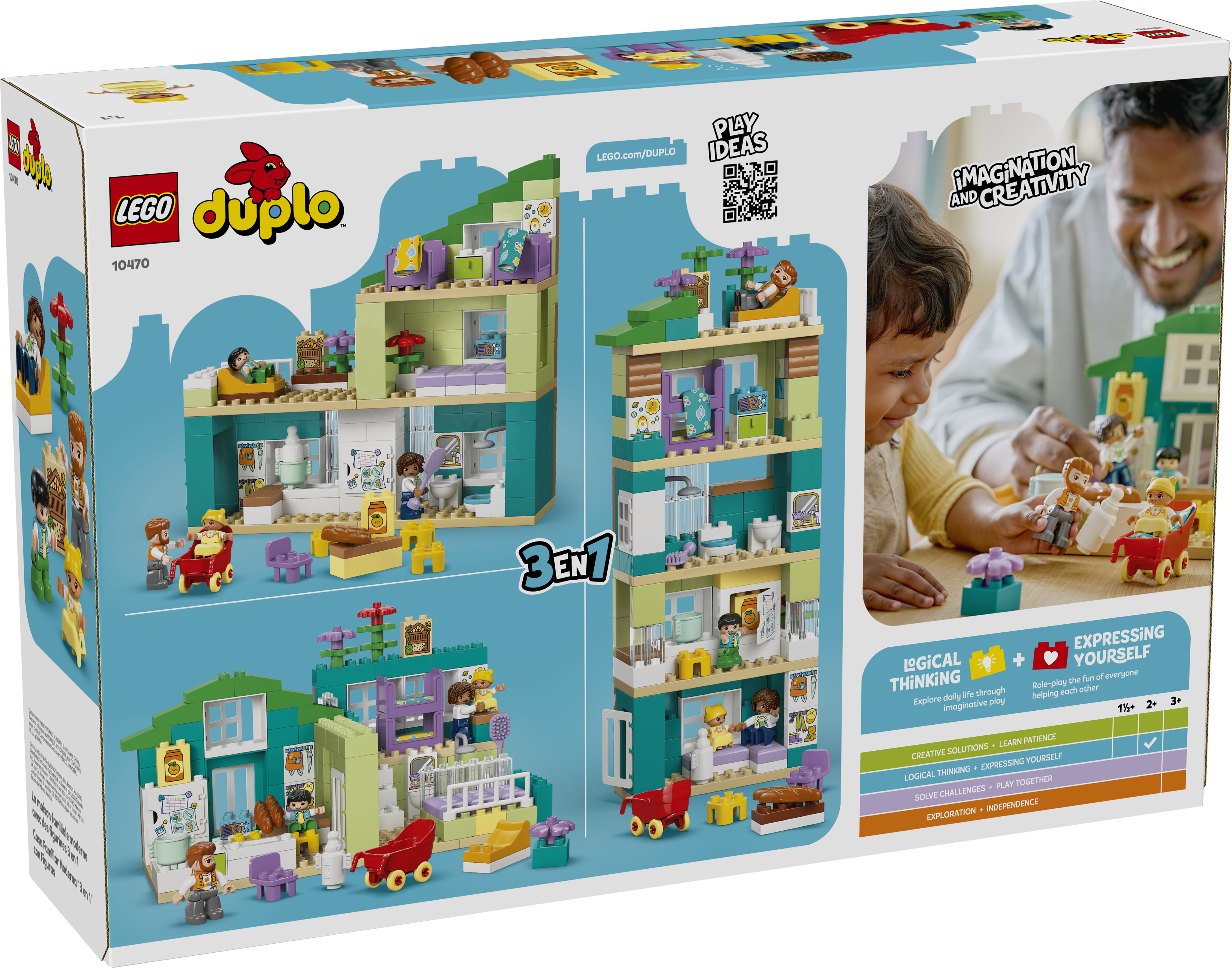 - DOLLHOUSE TOY – The detailed 3 in 1 Modern Family House with Figures (10470) toy lets toddlers act out routines and enjoy social, emotional learning activities as they pretend play family members