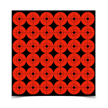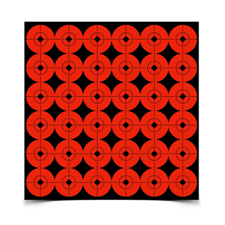 Description:   Target spots create instant bull s-eyes for all types of target practice. The high contrast radiant orange color lets you see a sharper sight picture and bullet holes more clearly for better scores and smaller groups. Key Features:- Self-Adhesive Targets- High-contrast radiant red color- Repair Pasters extend target life Size: 3 Spots Quantity: 40 Targets 120 Pasters.