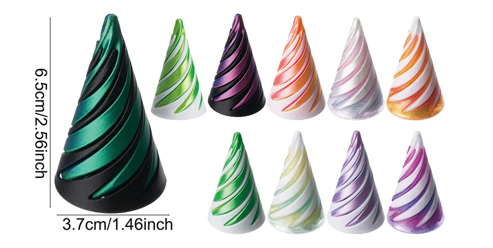 The 3D Printed Spiral Cone is a fun and mesmerizing desk toy that adds a twist of creativity to your workspace. Watching its elegant spiral design catch the light and spin smoothly offers a satisfying break from the daily grind. Perfect for sparking imagination or simply relaxing your mind, this playful piece brings both movement and style to any desk.