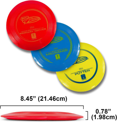 • COMPLETE SET FOR RECREATIONAL PLAY – This comprehensive disc golf game set features 3 specially engineered discs - 1 Fairway Driver (Red) for distance, 1 Mid-Range (Blue) for approach, and 1 Putter Disc (Yellow) for precision, ideal for recreational play and sure to enhance your performance on the course.