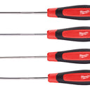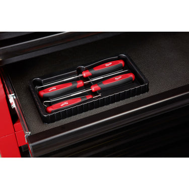 The Milwaukee 4- piece Hook and Pick set features an All-Metal Core for up to 50% more durability. Chrome-plated shanks reduce corrosion on the hooks and picks and provide superior rust protection. Comfort grip handles and precision knurling increase tool control and comfort. The kit has a straight pick, offset hook, o-ring hook, and 9 deg. right angle hook ideal for many mechanic and automotive uses.