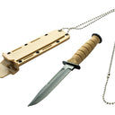 6" Clip Point Neck Knife, Beige Handle/Black Blade, Ball Neck Chain