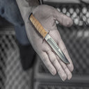Home 6" Clip Point Neck Knife, Beige Handle/Black Blade, Ball Neck Chain
