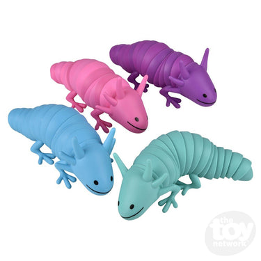 Lightly tap and shake these axolotls to watch them light up and make peaceful clacking sounds. These toys are great for fidgety hands. Assorted colors.