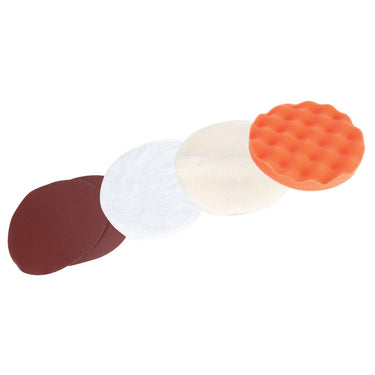 • Includes: Hook-and-loop backer pad, foam wax applicator, terry cloth, synthetic wool bonnet, two sanding disc pads and spanner wrench