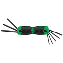 8-piece hex key set made from chrome vanadium steel. Features fold-out drivers for easy storage. Sizes T9-T40.