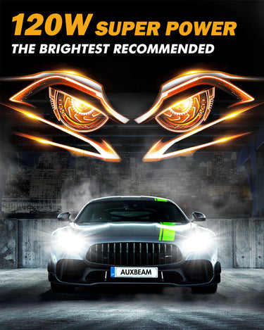 - 120W 25000Lumens per pair superior brightness flux adopt upgraded larger size 75mil LED obtain strong brightness vision.