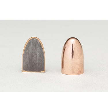 Hornady® FMJ handgun bullets have long served as a standard for target shooting applications. Hornady® FMJ bullets are built with a rugged jacket and the difference in performance is clear. The thinly plated full metal jacket from other manufacturers is easily distorted and often breaks or separates when the bullet impacts the target.