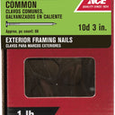 Ace 10D 3 in. Common Hot-Dipped Galvanized Steel Nail Flat Head 1 lb