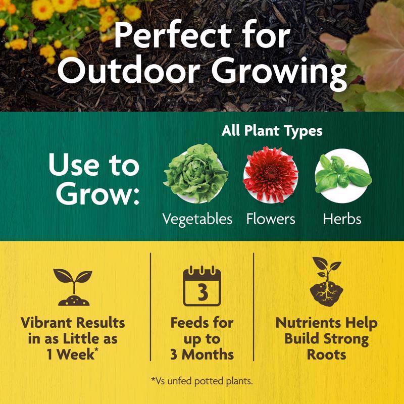 • Use these plant food granules with most outdoor plants: in-ground or container plants, vegetables, flowers, annuals, and perennials