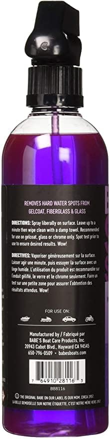 - Effective Hard Water Spot Removal: Babe’s Spot Solver is specially formulated to break down mineral build-up and eliminate tough hard water spots, keeping your boat’s surfaces crystal clear and spotless
