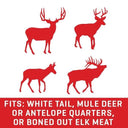 - DURABLE CONSTRUCTION: Made of a strong construction to securely hold white tail, mule deer or antelope quarters, or boned out elk meat.