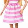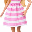 Celebrate 65 years of Barbie with this special edition Barbie® Fashion Doll, a timeless collectible for fans of all ages! Dressed in a chic pink and white striped off-shoulder dress, this Barbie doll features a black bow detail at the neckline, echoing the classic style of the original Barbie. Pearlescent earrings and pink heels complete her elegant look, making her a perfect addition to any collection. Whether for play or display, this commemorative doll is a wonderful gift for kids aged 3 and up.