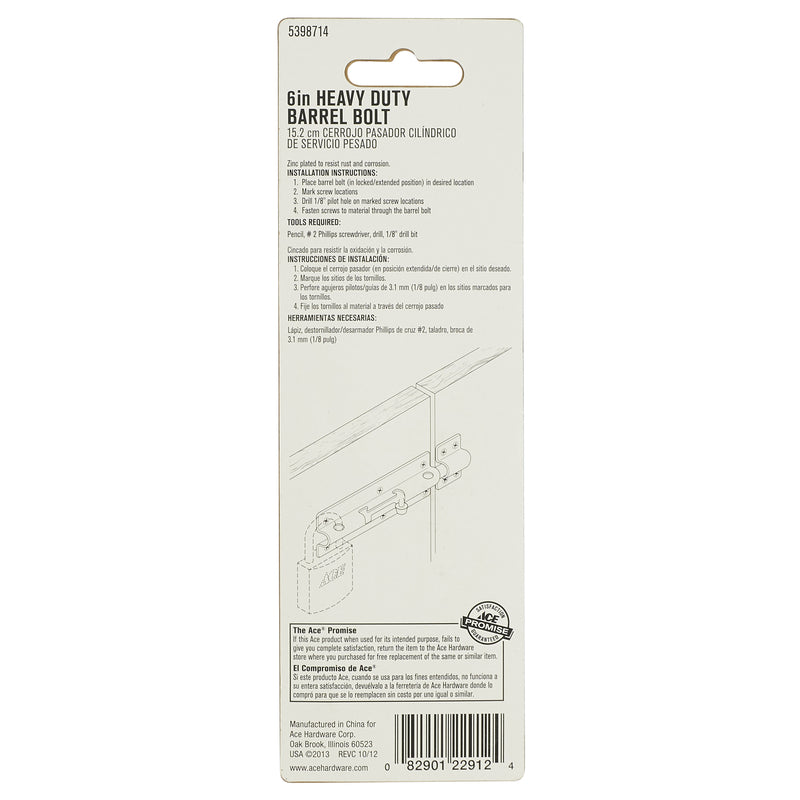 Ace 6 in. L Polished Stainless Steel Heavy Duty Barrel Bolt 1 pk