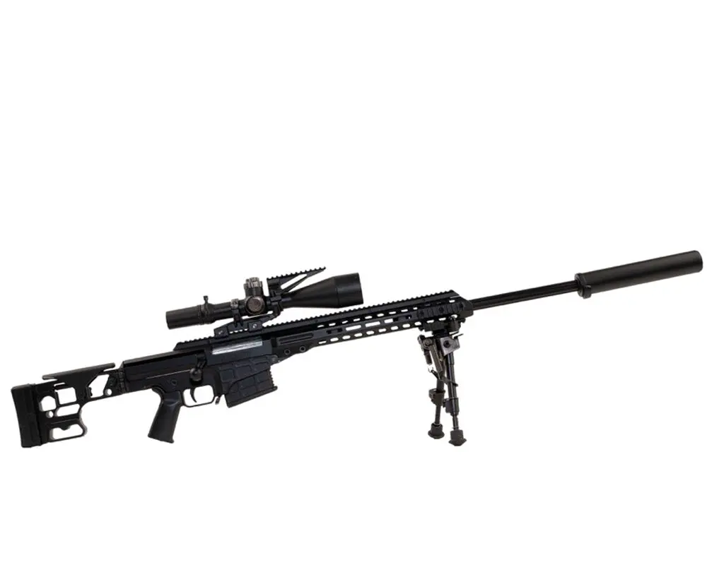 The Barrett MRAD (Multi-Role Adaptive Design), sometimes referred to as the Barrett MK22, is a modular, bolt-action sniper rifle designed by Barrett. Introduced in the early 2010s, it offers a high degree of adaptability, allowing users to change calibers and configurations to suit various mission requirements. Chambered for various cartridges, including the .338 and .300, it is favored by military and law enforcement snipers for its accuracy and versatility. The Barrett MRAD's legacy includes its innovative design and its role in modernizing bolt-action sniper rifles for long-range precision.