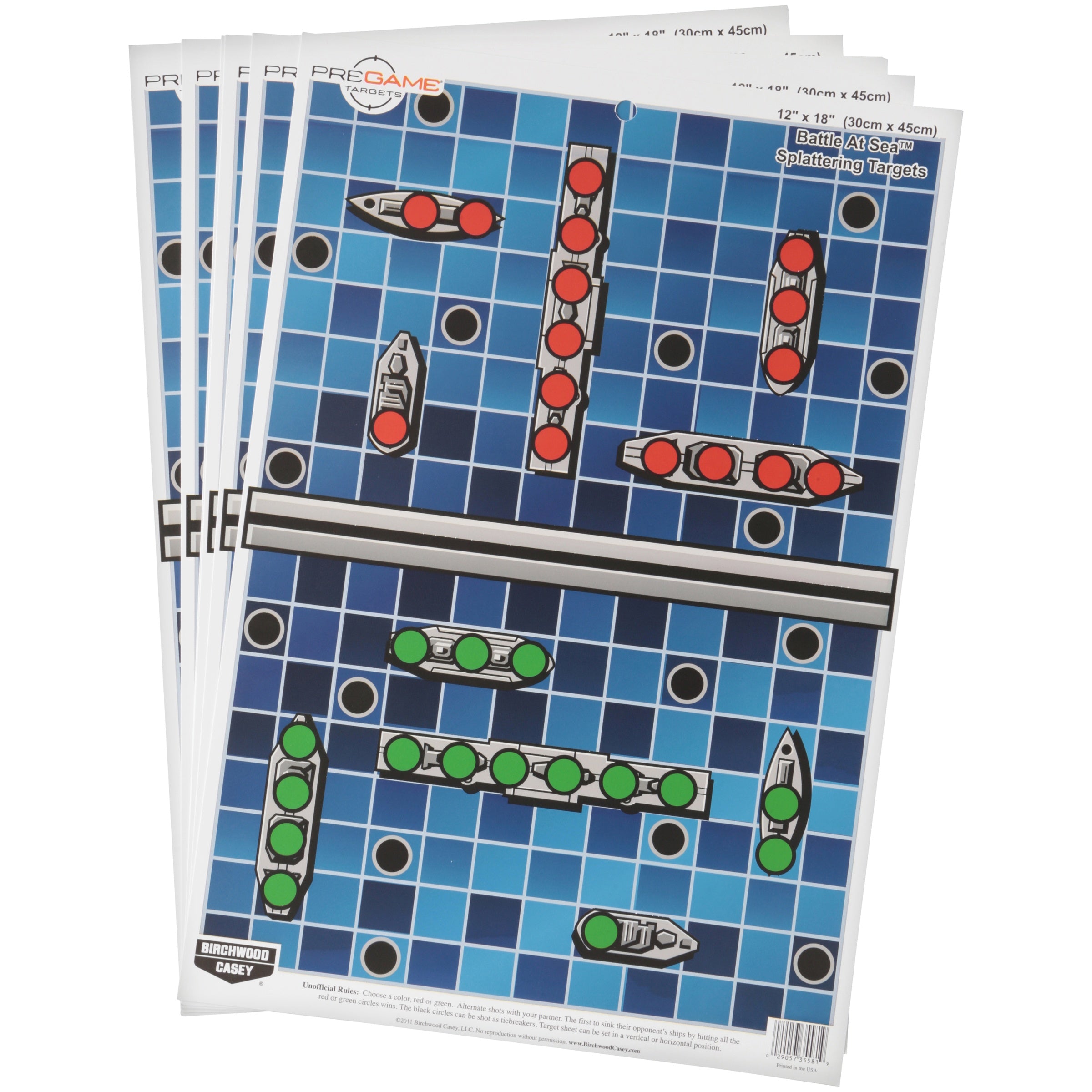 Description: Designed for shooting practice, this Birchwood Casey Pregame Battle at Sea Target combines creative gameplay with practical skill development. The innovative target design offers improved visibility with intense white splatter marking, improving the shooting experience for firearms enthusiasts.