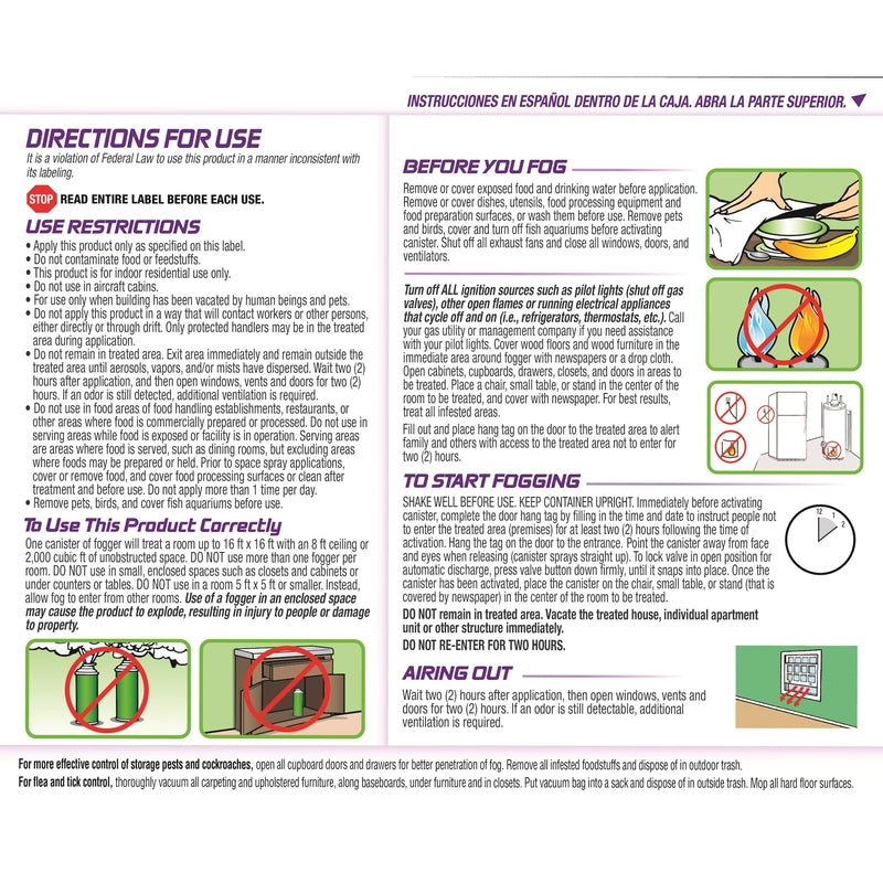• WHERE TO USE: Use indoors in enclosed spaces such as apartments, attics, basements, boats, cabins, closed porches, condos, garages, homes, kitchens and pet sleeping areas