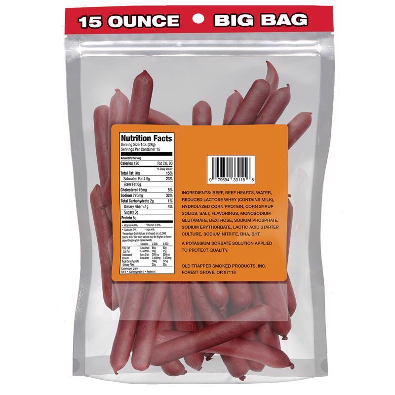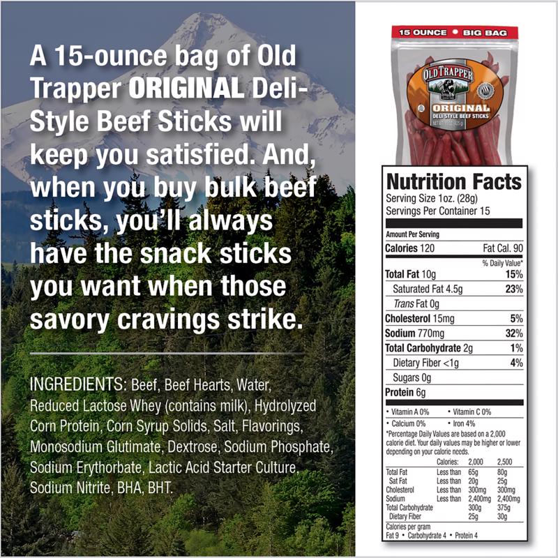 Old Trapper's original deli-style beef sticks will knock out your craving for bold and tasty beef and at 15 oz. to a pack, your hunger doesn't stand a chance.