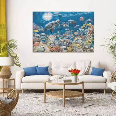 With a plethora of tropical fish, colorful coral, sea turtles, whales, dolphin and more for company, come discover puzzle bliss “Beneath the Sea”!