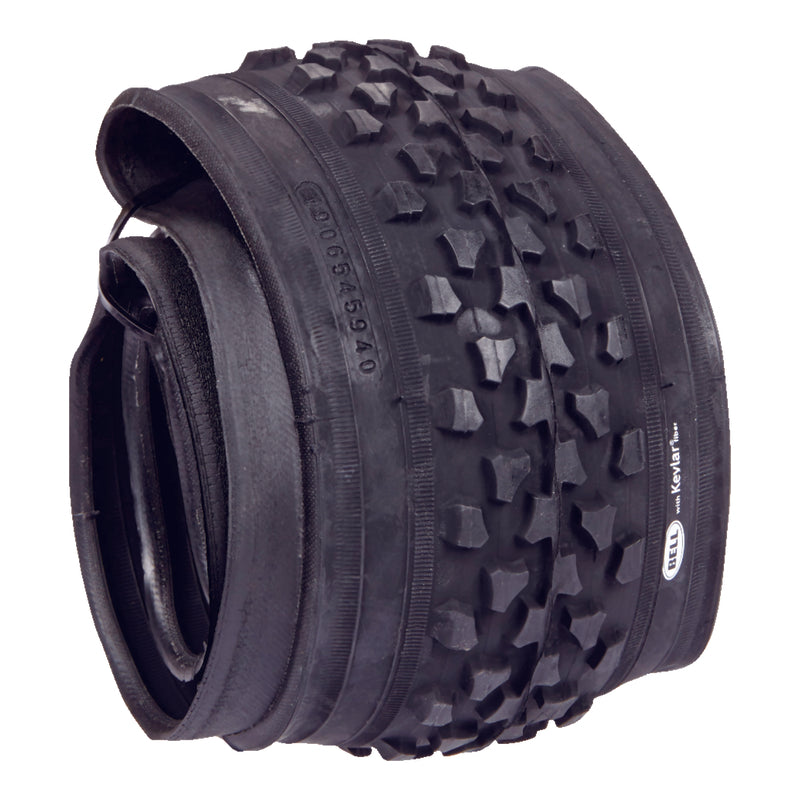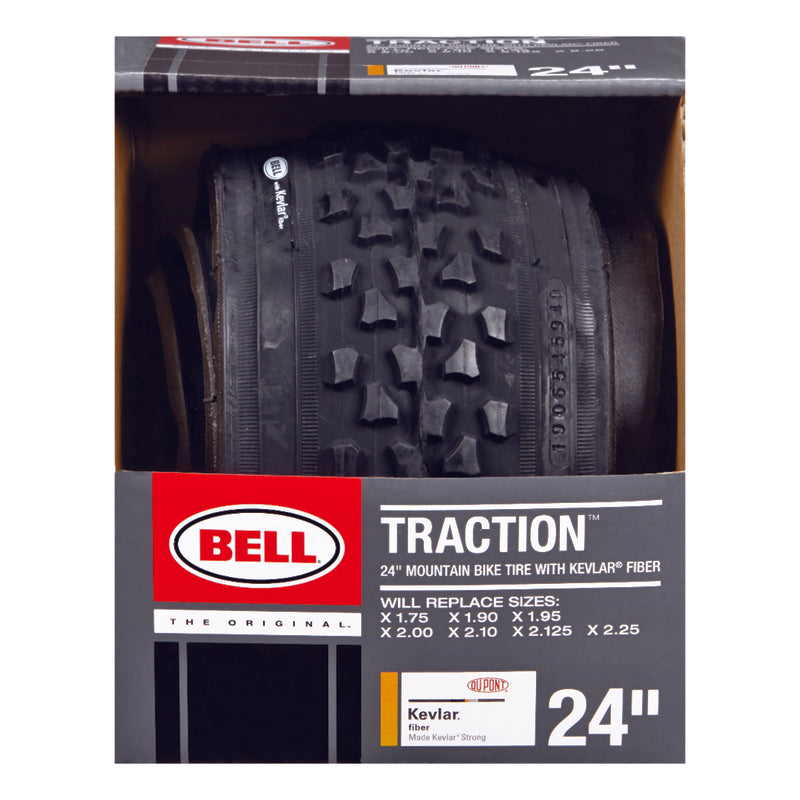 Bell Sports 24 inch mountain bike tire features flat defense technology. Carbon steel bead allows tire to be folded and unfolded without damage for easy storage.
