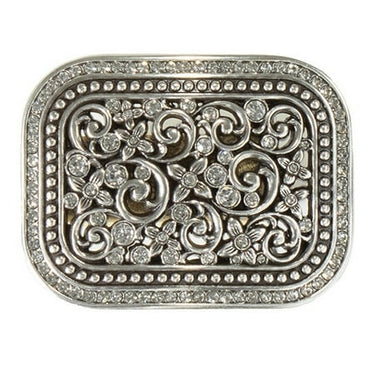 Blazin Roxx Rectangle Buckle Floral Filigree Crystal Shiny Silver Finish