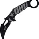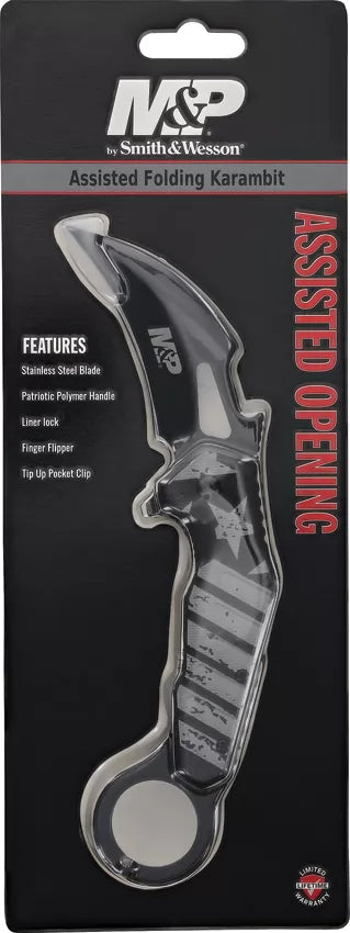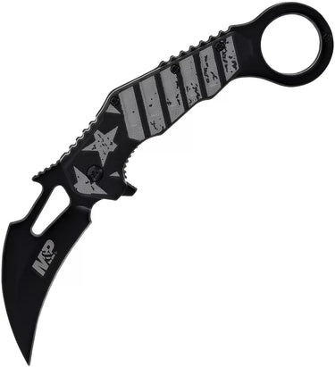 The Smith & Wesson BRK-SWP1200649 Karambit Linerlock delivers tactical functionality in a compact, easily carried design. Featuring a curved AUS-8 stainless steel blade built for precision cutting and piercing, this knife offers a secure grip with its ergonomic G-10 handle. The liner lock mechanism ensures dependable blade deployment and secure lockup during use. Ideal for everyday carry or self-defense situations, this Karambit provides reliable performance. 5" (12.7cm) closed. 3" (7.62cm) black oxide coated stainless karambit blade. Black polymer handle. Finger ring. Extended tang. Thumb pull. Pocket clip. Stars and stripes handle artwork. Clam packed.