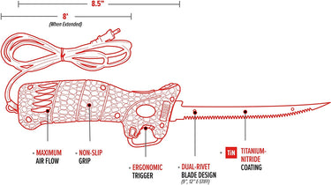 Bubba 110V Electric Fillet Knife with Non-Slip Grip Handle, 4 Ti-Nitride S.S. Coated Non-Stick Reciprocating Blades, 8' Cord and Storage Case for Fishing