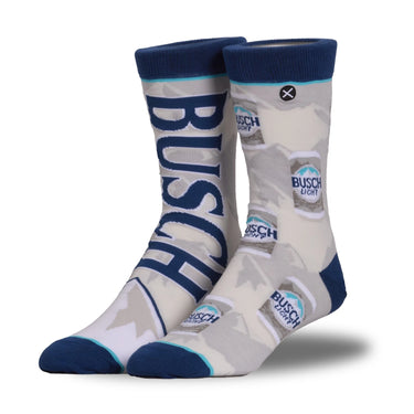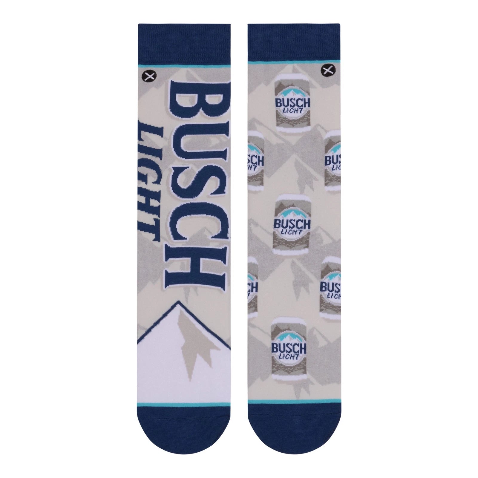 • Right sock features the Busch Light logo; left sock showcases a pattern of classic cans