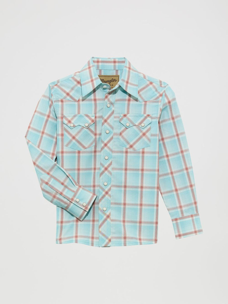 Fancy Western yokes, spread collar, and snaps give off cowboy-inspired plaid style. He'll look clean cut even when tumbling around in durable 100% cotton with contrast stitching.