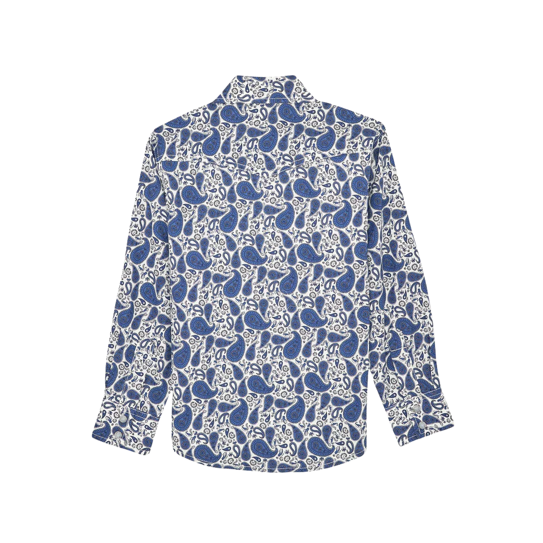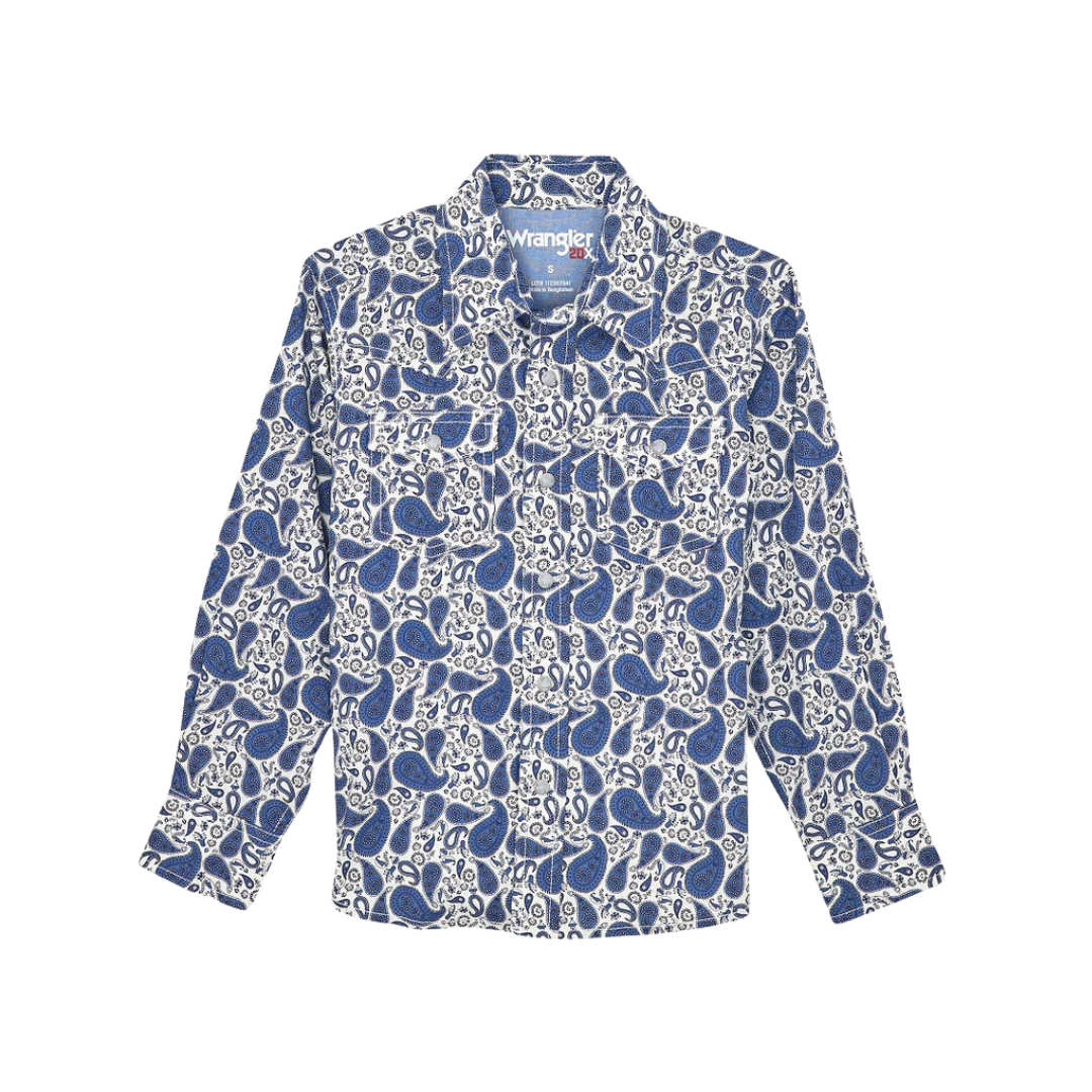 Wrangler Youth Boy's Long Sleeve Shirt (Paisley Blue) Size S