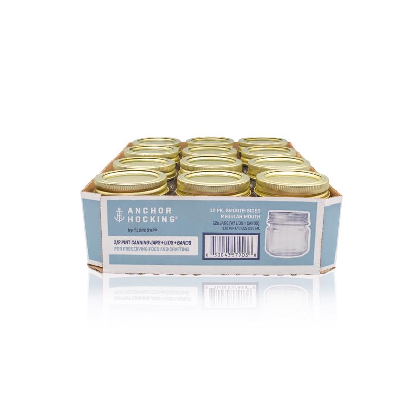 Anchor Hocking Tecnocap Regular Mouth Canning Jar 8 oz 12 pk