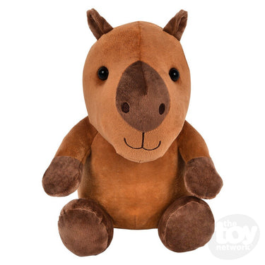 These 11.5-inch plush capybara are great options. These plush come with plastic eyes and are in a sitting position.