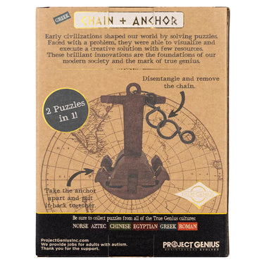 Put your problem-solving skills to the test with Chain & Anchor, a dual puzzle challenge inspired by the brilliance of ancient engineering. First, dismantle and reassemble the intricate anchor puzzle, then shift gears to disentangle the links of the chain in a separate metal brainteaser.