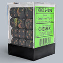 Chessex Brush Deep Forest/Gold 12mm d6 Dice Block (36 dice)
