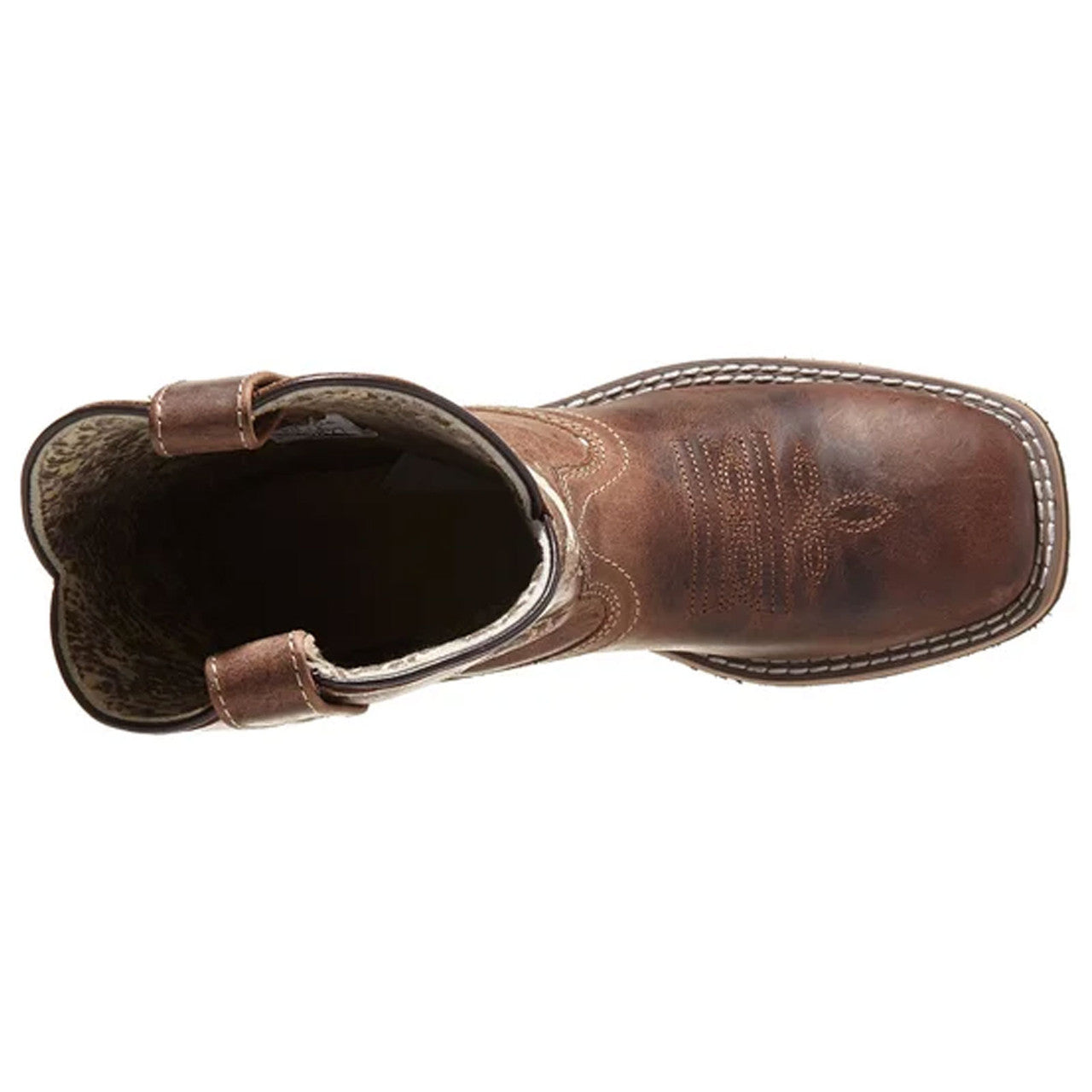 Designed to look like their adult counterpart, the distressed brown leather construction ensures these boots will last while the TPR outsole offers support and comfort so they can concentrate on being a kid. The pull straps on both sides of the boots make them easy for children to put on and take off by themselves. This feature encourages independence and convenience. Decorative detailing along the shaft offers an eye-catching appeal and will complement any pair of jeans as the trendy square toe will keep them in vogue. Sure to stand up to the rigors of Mutton Bustin' and Goat Tying, the Smoky Mountain Kids' Boots are sure to be essential for stampedes, rodeos, and more!