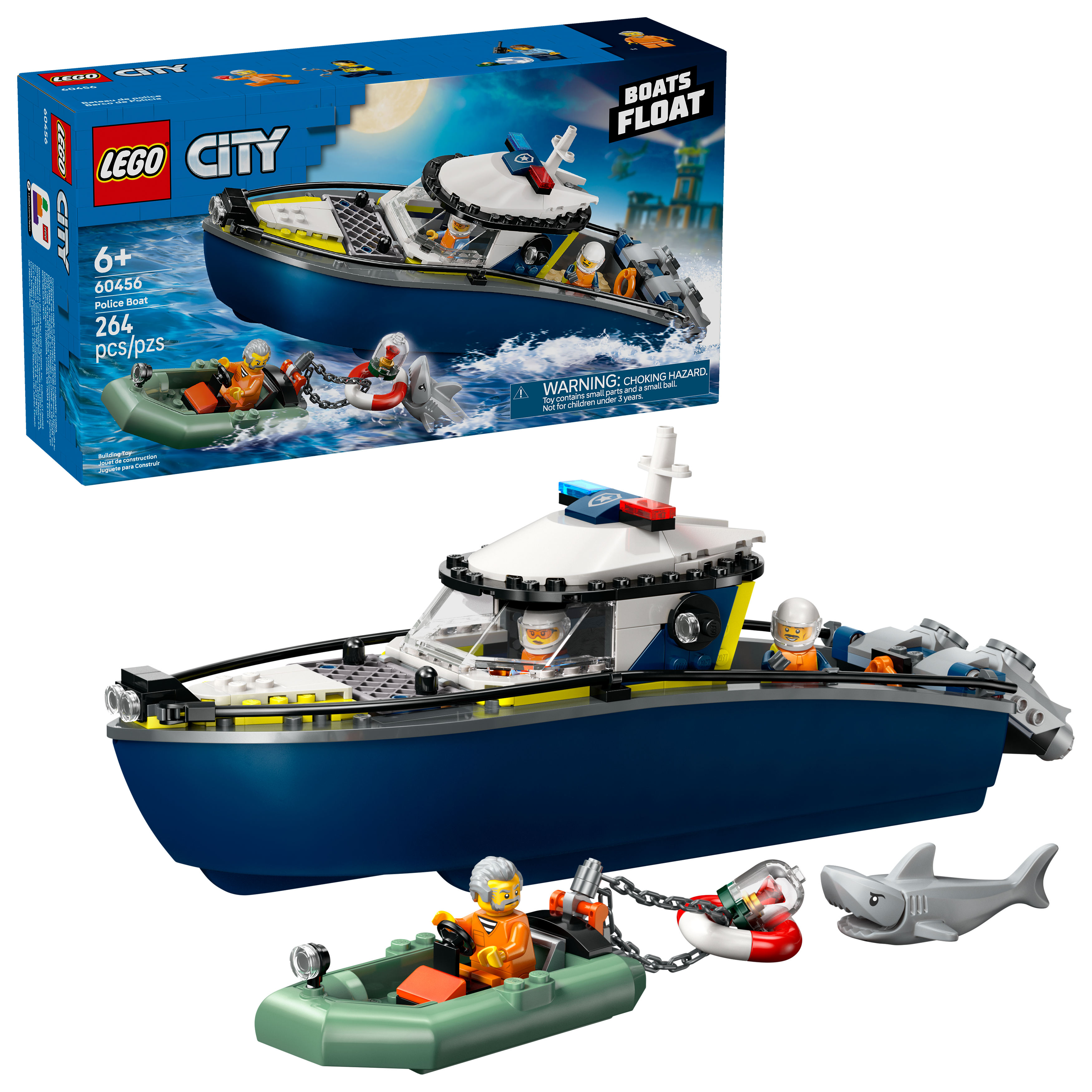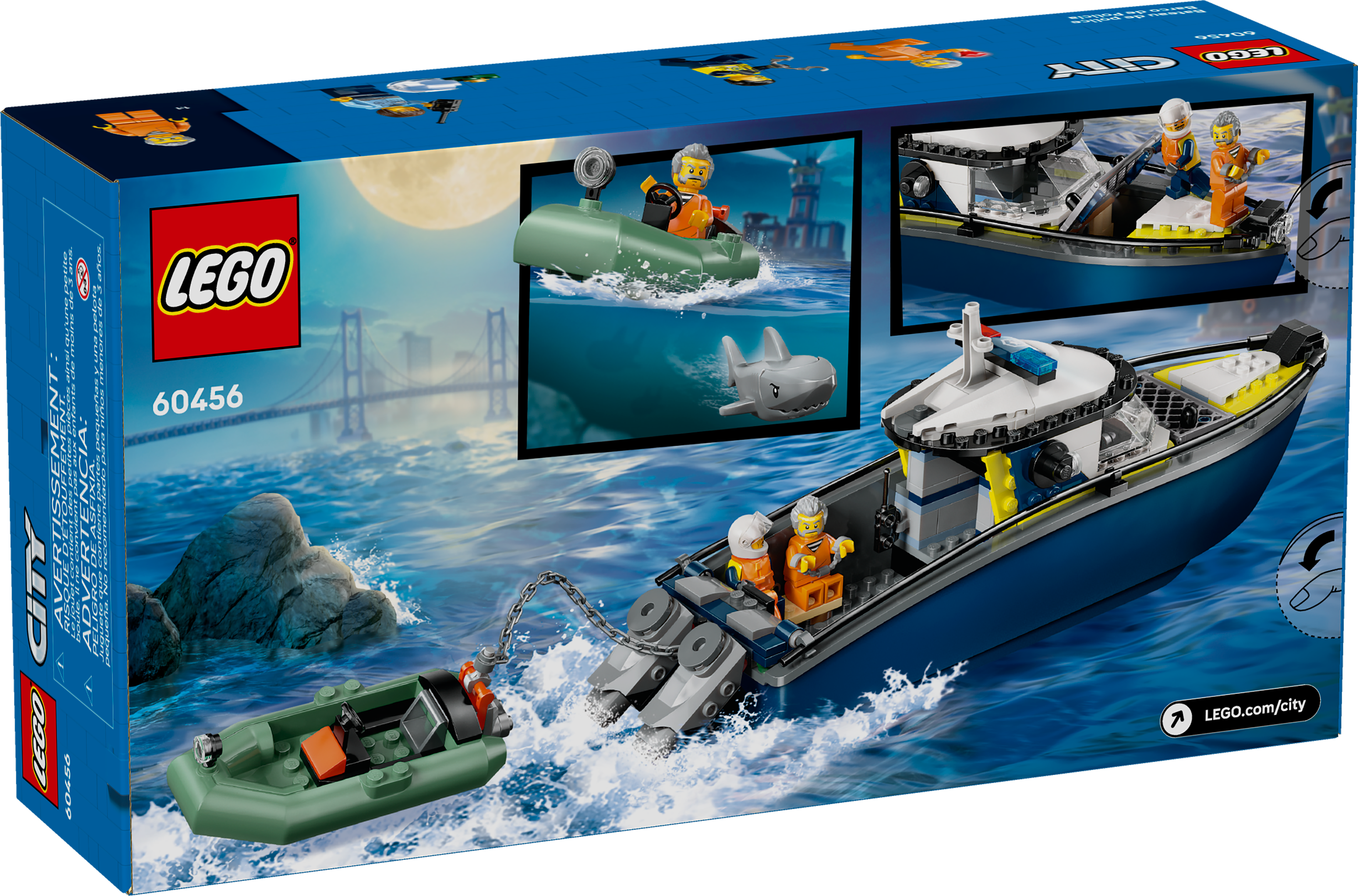 • Police boat chase playset for everyday heroes – Kids can dive into an ocean of action-packed crook-catching adventures with the LEGO® City Police Boat Chase set for ages 6 and up