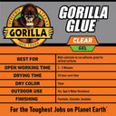 Clear Gorilla Glue Gel is a versatile, all-purpose hybrid adhesive that is incredibly strong and durable. The thick, no-run gel formula is easy to dispense, requires no clamping, and is great for vertical projects and repairs, making it the ideal product for both indoors and out. The strength and versatility you have come to expect from Gorilla Glue is now available in an easy to use, crystal clear, non-foaming formula. Clear Gorilla Glue is incredibly strong and bonds virtually everything. All surfaces must be clean and tight fitting. Clear Gorilla Glue will not stain clothes. For non-porous surfaces only lightly dampen one surface with water. Do not add water to bottle.