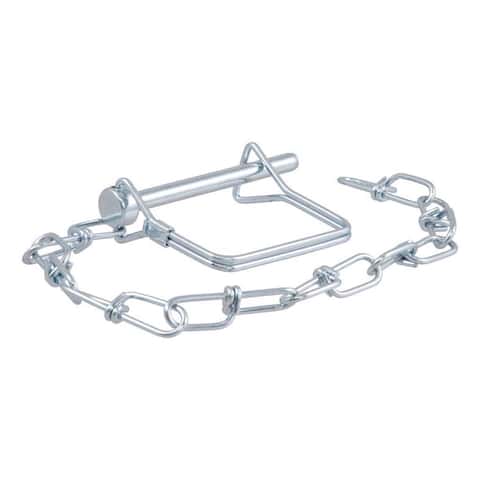 Curt safety pins go beyond the simple function of keeping your coupler latch secure. They are constructed from quality materials and have a universal design that allows them be used for a variety of purposes in your towing setup. Curt safety pins are made from solid steel to provide more than enough strength to keep your trailer coupler latched down tight. The zinc plating that we use to finish our safety pins offers excellent protection against rust and corrosion.The user-friendly design of our safety pins allows them to be easily handled while maintaining effective security. This safety pin has a pin diameter of 1/4" and includes a 12" chain attachment to mount onto your trailer coupler and prevent the safety pin from being misplaced. Use CURT safety pins for securing trailer couplers, jacks, caster wheels and more. When you couple your trailer to your vehicle, nuts and bolts just do not cut it. Secure your towing equipment right with a safety pin from Curt.