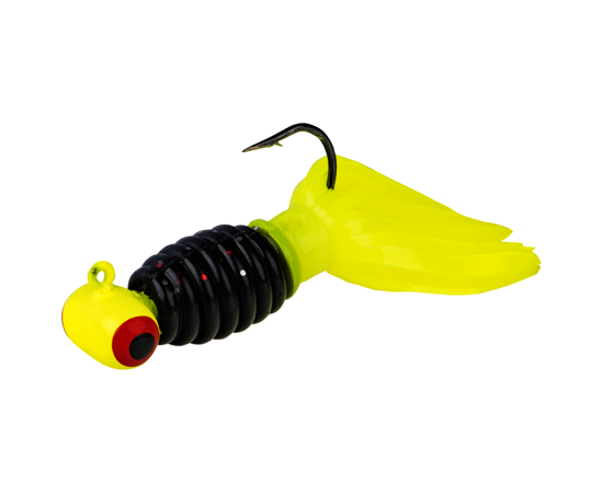 The unique shape of the Strike King® Mr. Crappie® Sausage Head jig can help you catch more fish. It swims in perfect balance whether cast or vertically jigged, with its Crappie Thunder® tail tentacles waving and darting. When the bite comes, the extra-wide jigface prevents the bait from rolling over in the fish's mouth, enabling a perfect hookset every time. Premium Eagle Claw® Light Wire platinum black hook.