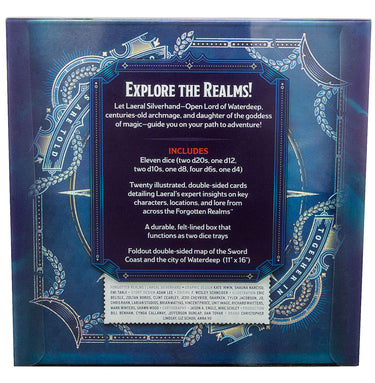- Twenty illustrated, double-sided cards detailing Laeral's expert insights on key characters, locations, and lore from across the Forgotten Realms.