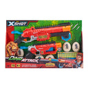 The new X-Shot Dino Attack range is here! Get ready for the Dino invasion with the Ultimate Dino Attack Combo Pack featuring the Dino Striker blaster with its auto-rotating barrel & the shot-gun style Claw Hunter blaster. This combo pack includes multiple Dino egg targets and a massive amount of foam darts. Join the eggs together, place them down and then blast them away before they hatch! Annihilate Dino Eggs with extreme accuracy from up to 90ft / 27m away. With this blaster combination no invader stands a chance.