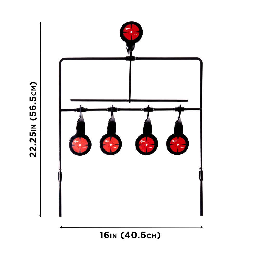 - TARGET SHOOTING SYSTEM: 1/4-inch round powder coated steel frame finish folds easily for storage when not in use & measures 15.75-inches wide x 22.25-inches tall.