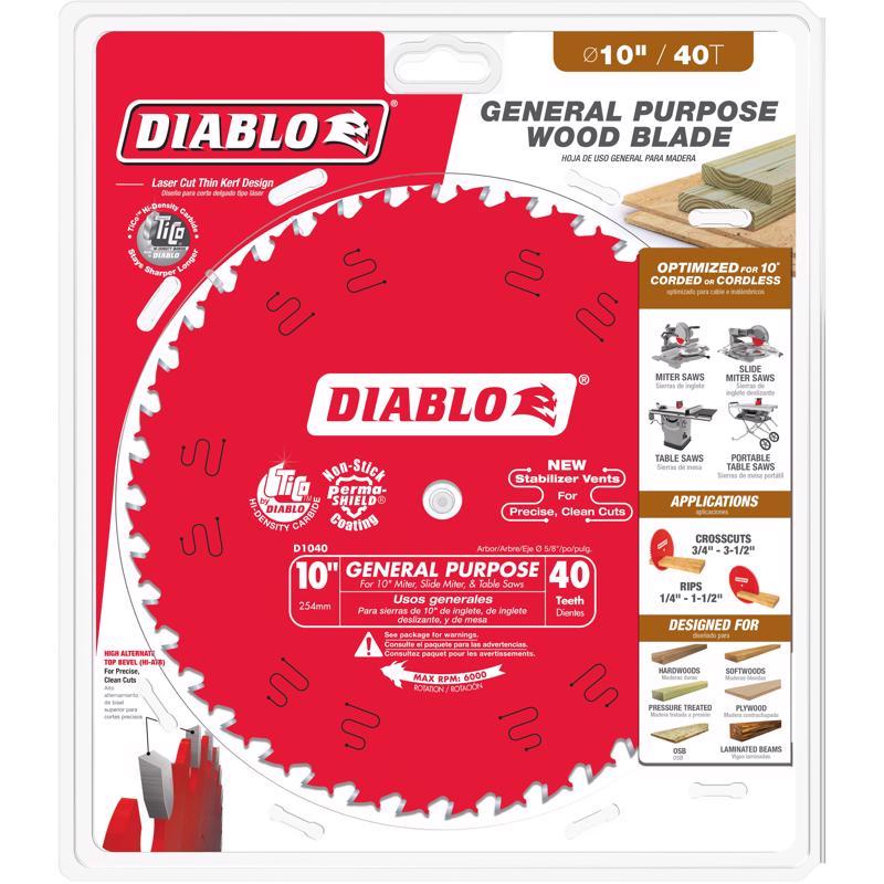 Diablo's general purpose blade is ideal for cutting oak, pine, plywood, pressure treated lumber and beams. An excellent choice for table and miter saws, Diablo's blade leaves a smooth cut in a variety of applications, reducing the need to change blades between tasks. Use it for rip cuts with a smoother finish than dedicated ripping blades or make quality crosscuts in solid wood or plywood. Great for chop and sliding style miter saws as well as table saws.