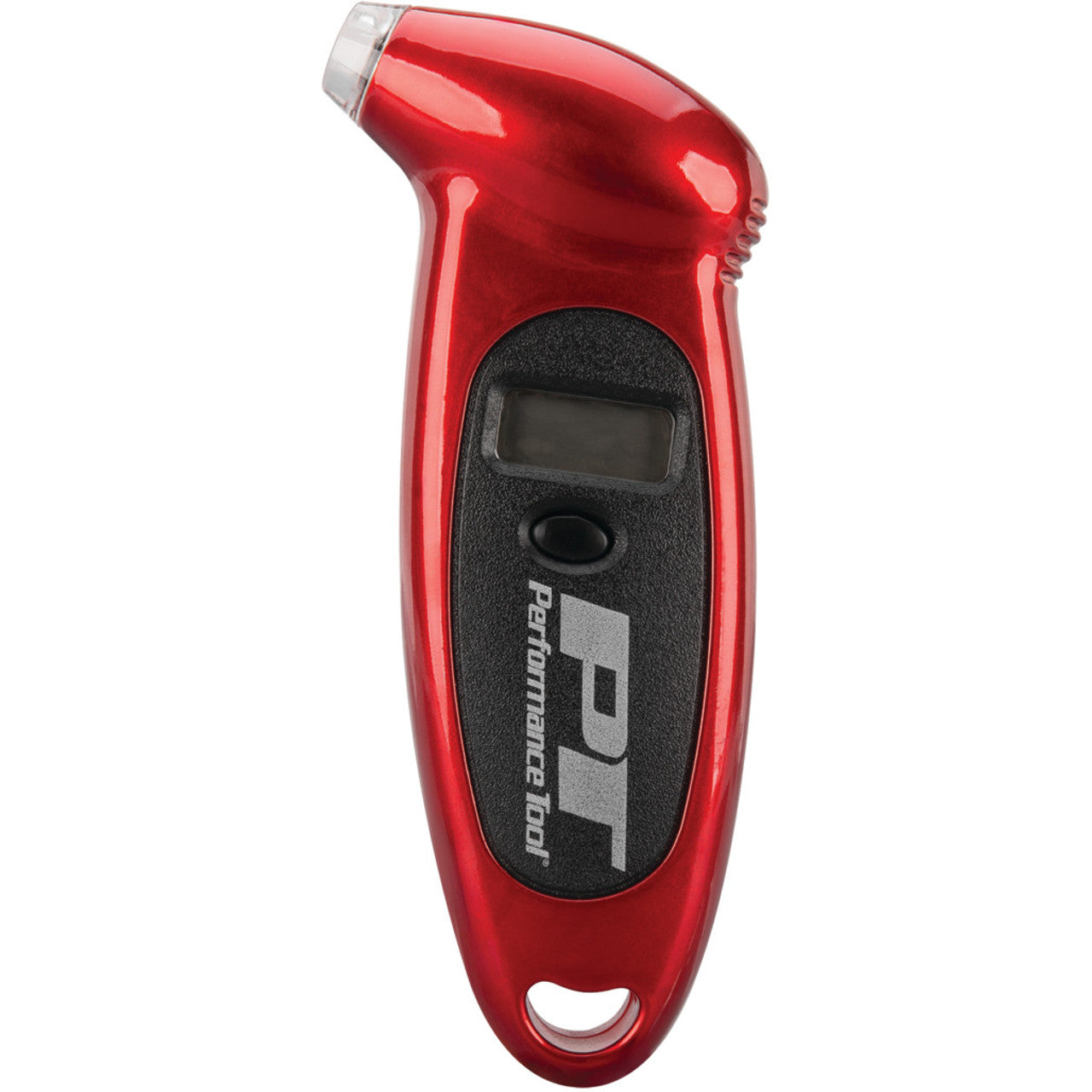 Backlit digital tire pressure gauge that displays PSI, BAR and Kpa. Lighted tip for easy nighttime use.
