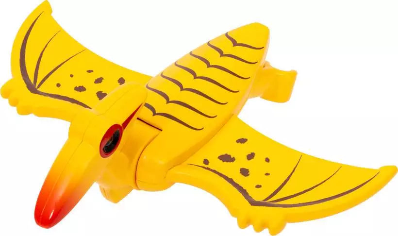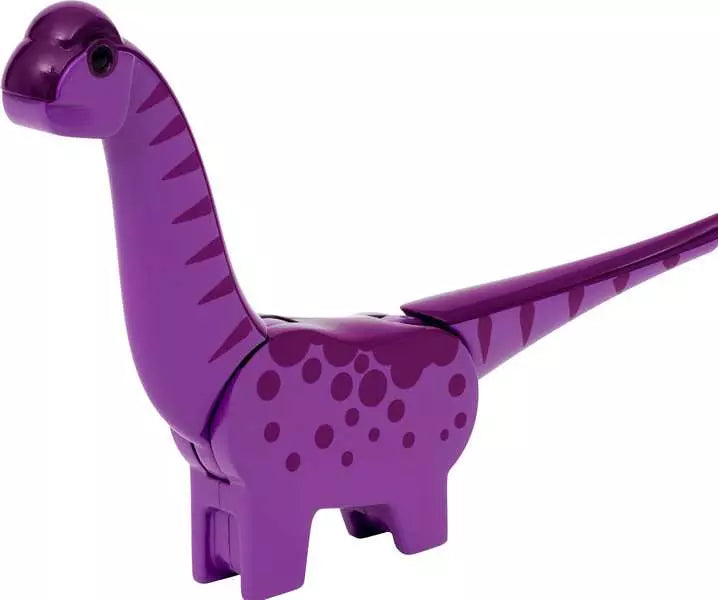 36094 Dinosaur Adventure Set includes 21 pieces: 2x Brachiosauruses Figures, 1x Pteranodon Figure, 1x Lava Cave, 1x Dinosaur-themed Engine, 1x Wagon, 1x Load Wagon, 1x Wooden Egg Load, 3x Scenic Tracks & Switches, 2x Ascending Curve Tracks, 3x Track Supports, 5x Wooden Tracks and Switches.