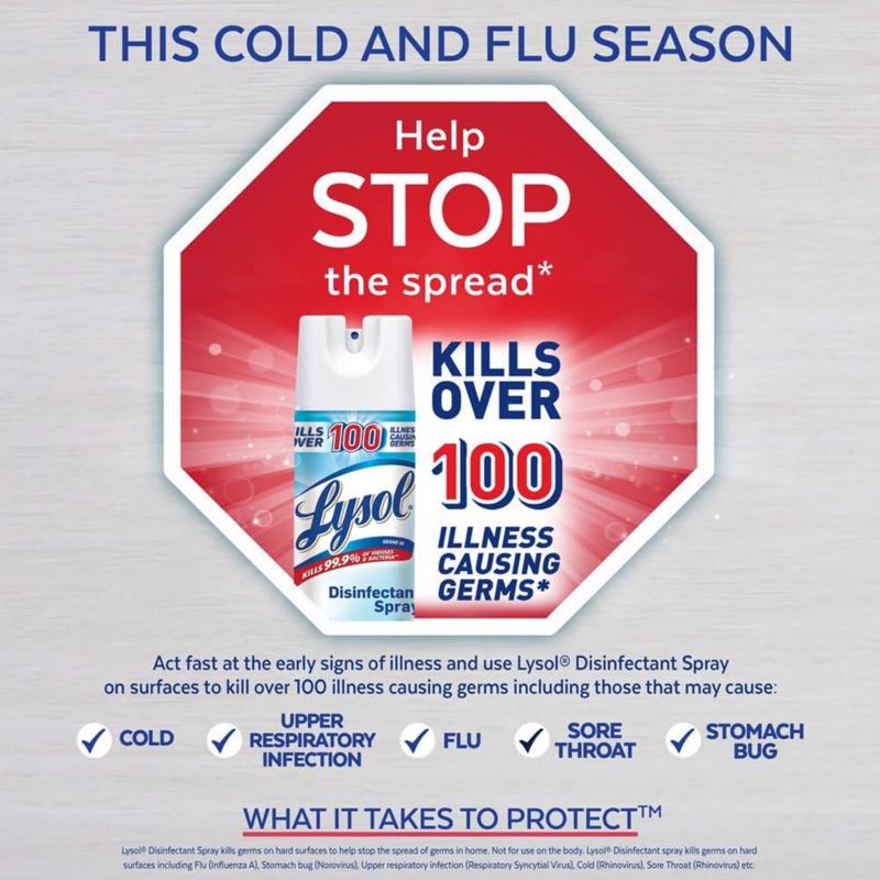 Lysol disinfectant sprays kill 99.9 percent of the viruses and bacteria your family comes in contact with every day. Disinfectants can be used to eliminate germs on commonly touched hard and soft surfaces.