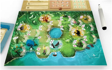 • Drawn to Adventure is a campaign-driven, roll-&-write game. Each player uses a dry-erase flip-book that contains six different hex-grid maps. Campaigns are played over three of the six maps