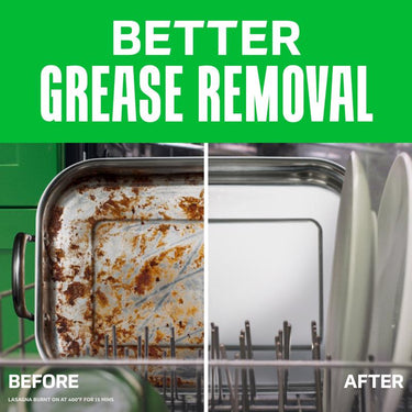 • Dishwasher detergent cleans burnt-on messes in just one wash, with no pre-wash needed