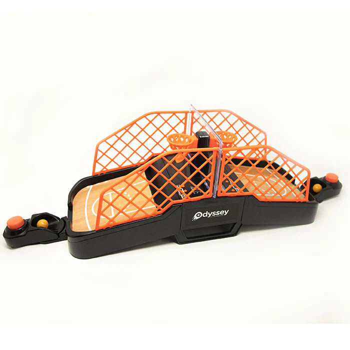 Three….two…one…you shoot…you score! Odyssey Toys presents Dueling Desktop Basketball, a tabletop basketball game that fuses portability with good old-fashioned hoops. Score as many buckets as you can before the buzzer sounds, and if you’re skilled enough, you can claim victory!