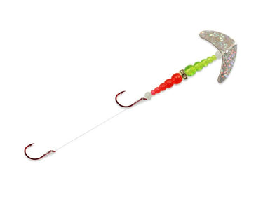 The Double Whammy Pro combines a Smile Blade, Wedding Ring and two sharp red hooks to create a spinner that will effectively shake crawlers or other baits for walleye, trout and kokanee.